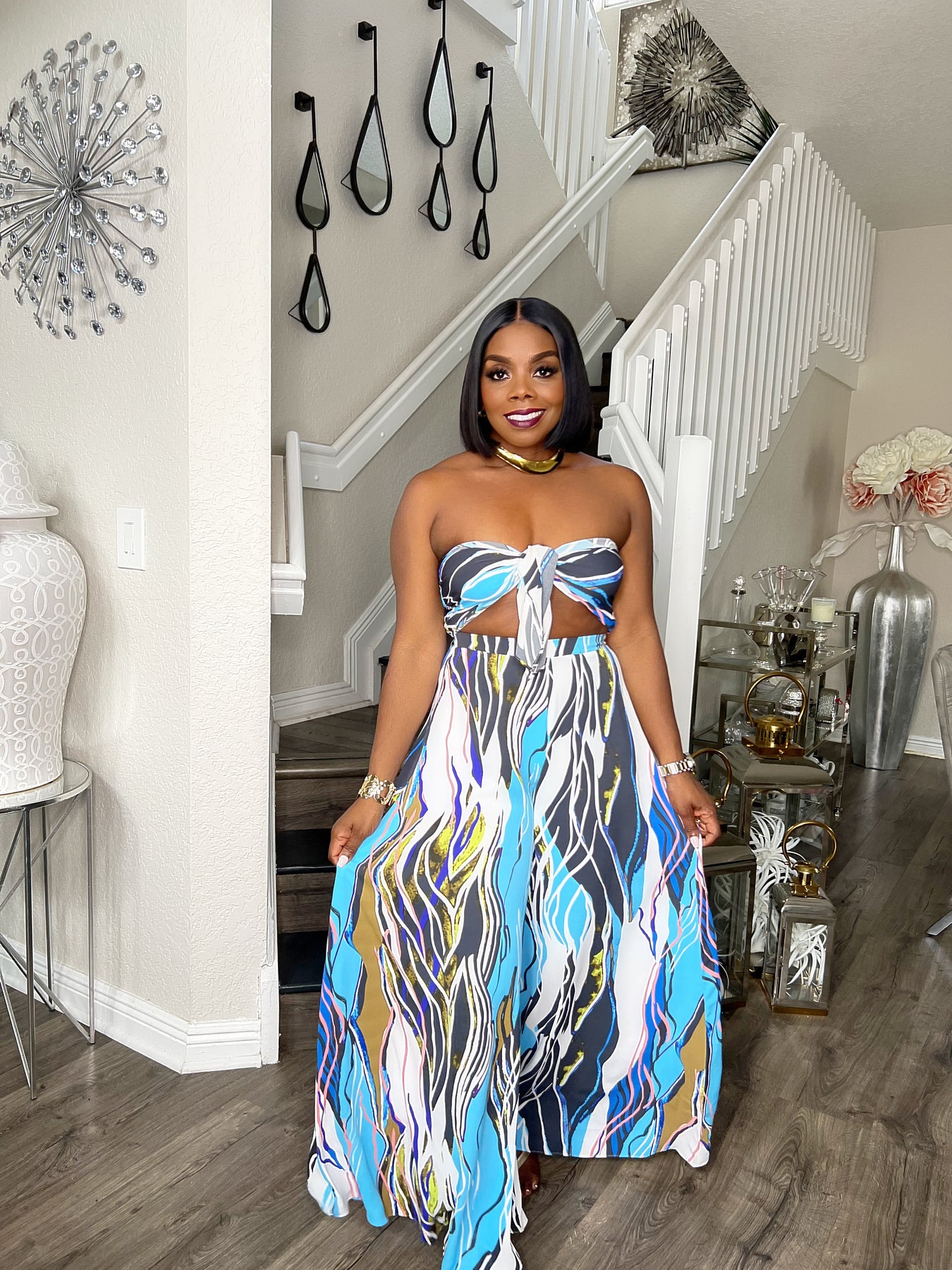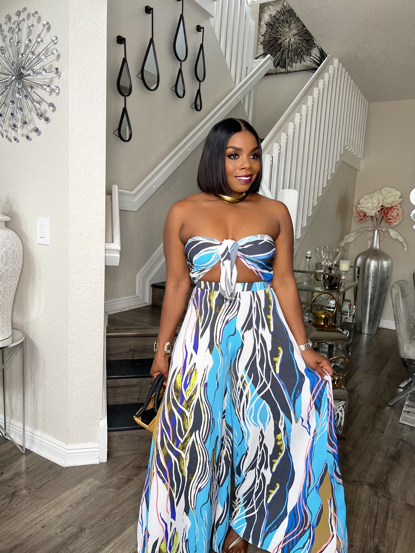 Gorgeous and Flowy Abstract Print Pants Set.