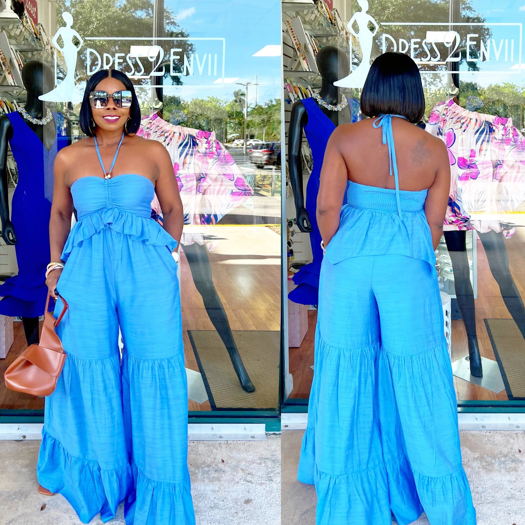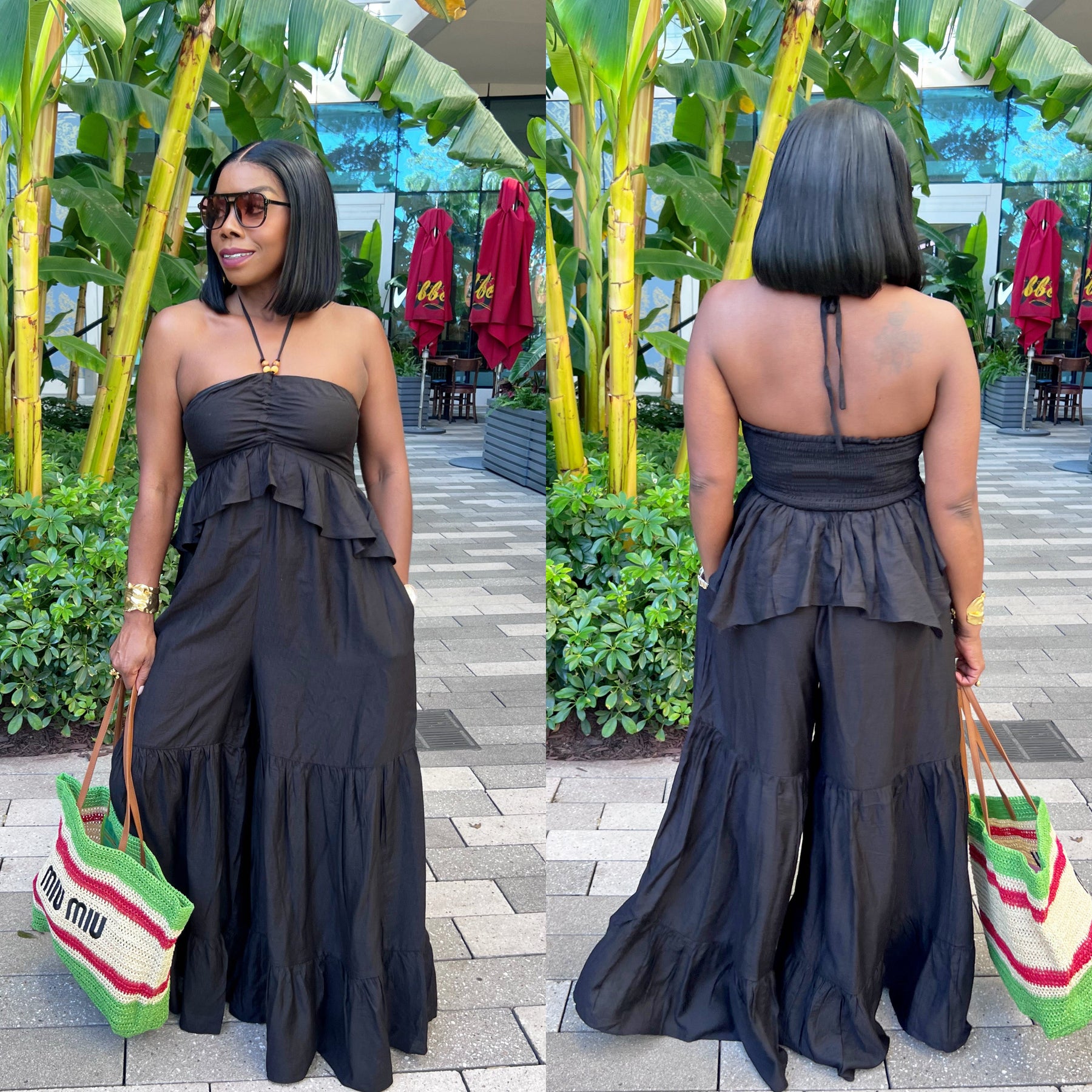 **Ships On August 2nd**Gorgeous Boho Chic Flowy Halter Style Jumpsuit With Bead Details.