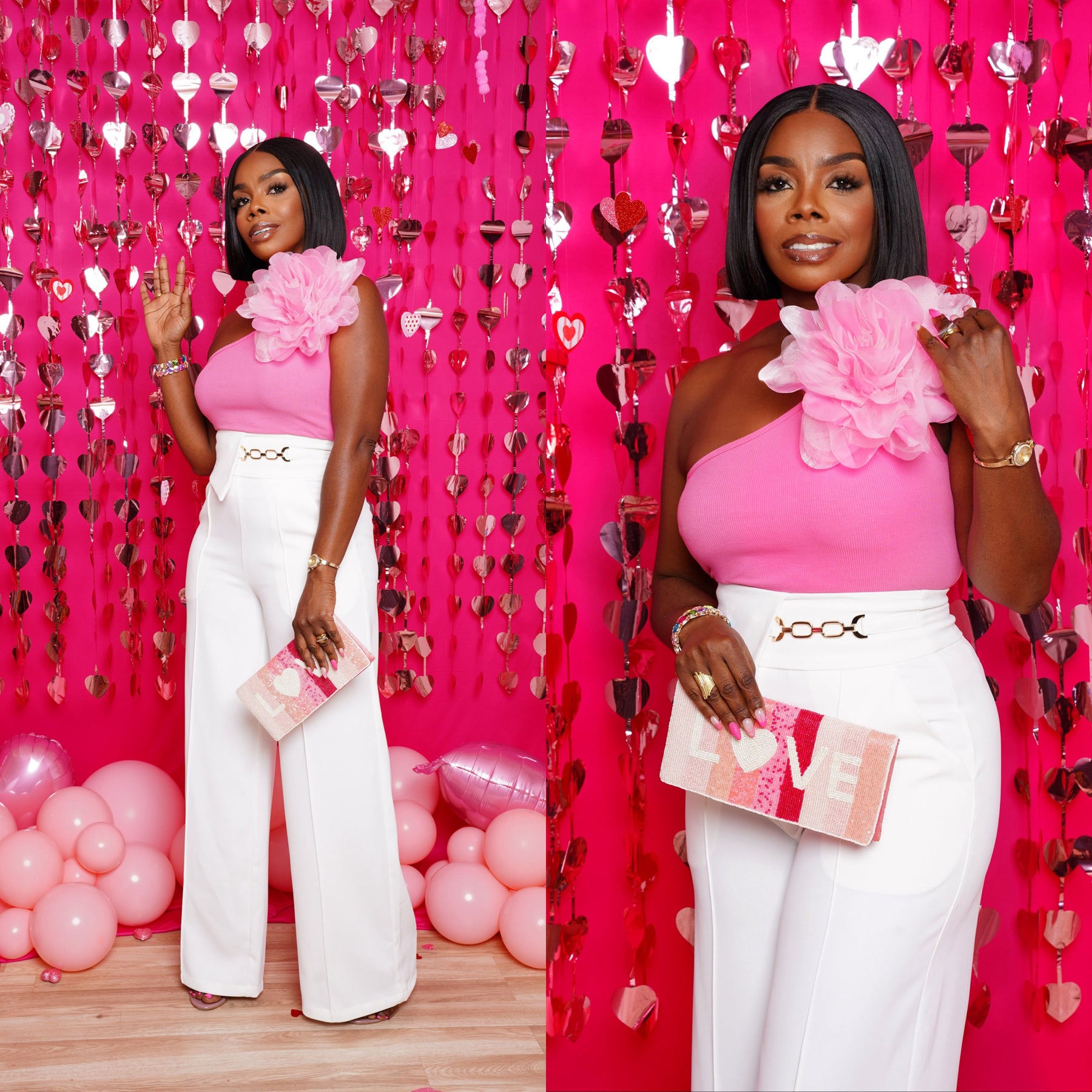 Chic And Classy Highwaist Wide Leg White Pants. Features Flap Waist With Gold Buckle Detail.