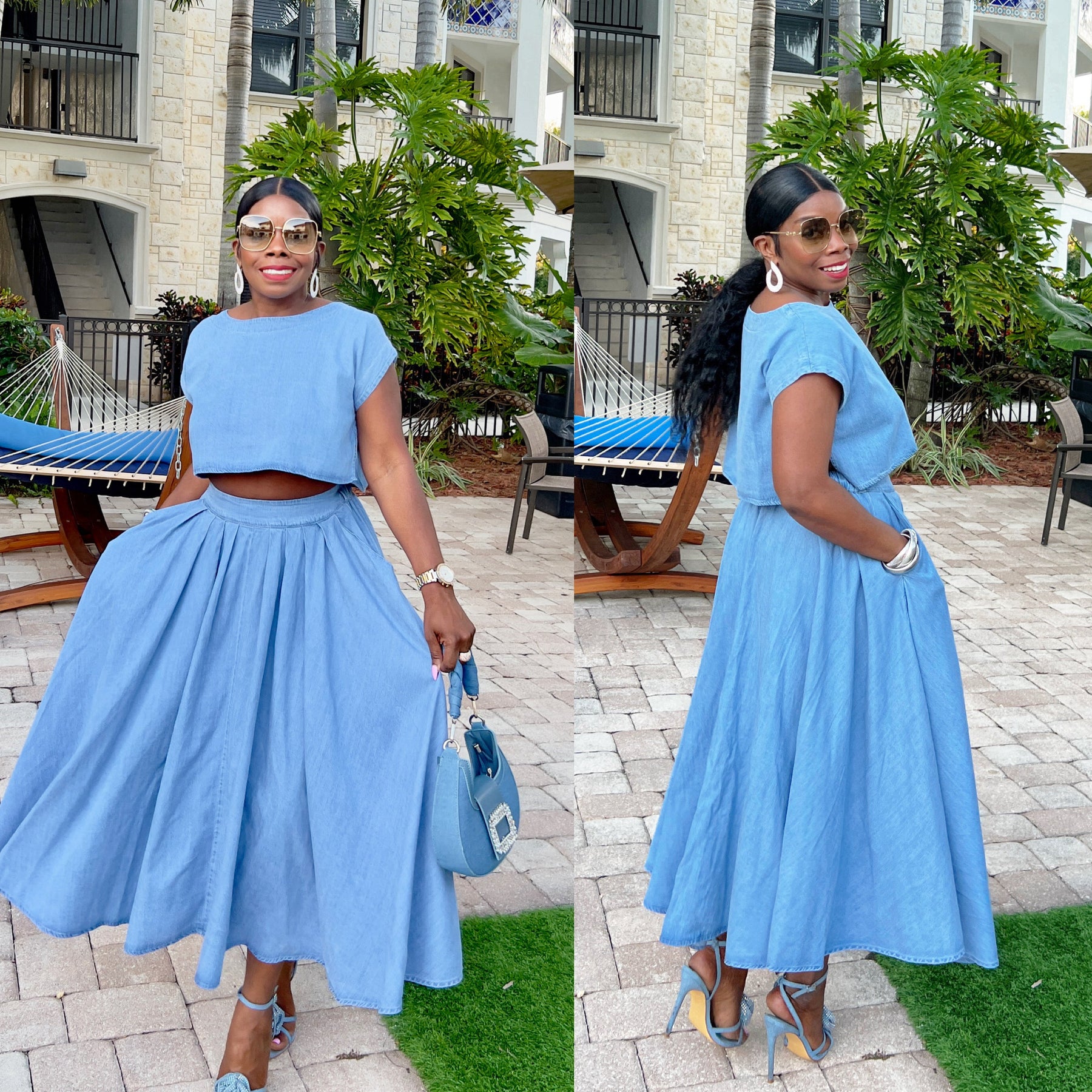 Pre Order Ships April 26thGorgeous And Two Piece Denim Skirt Set.