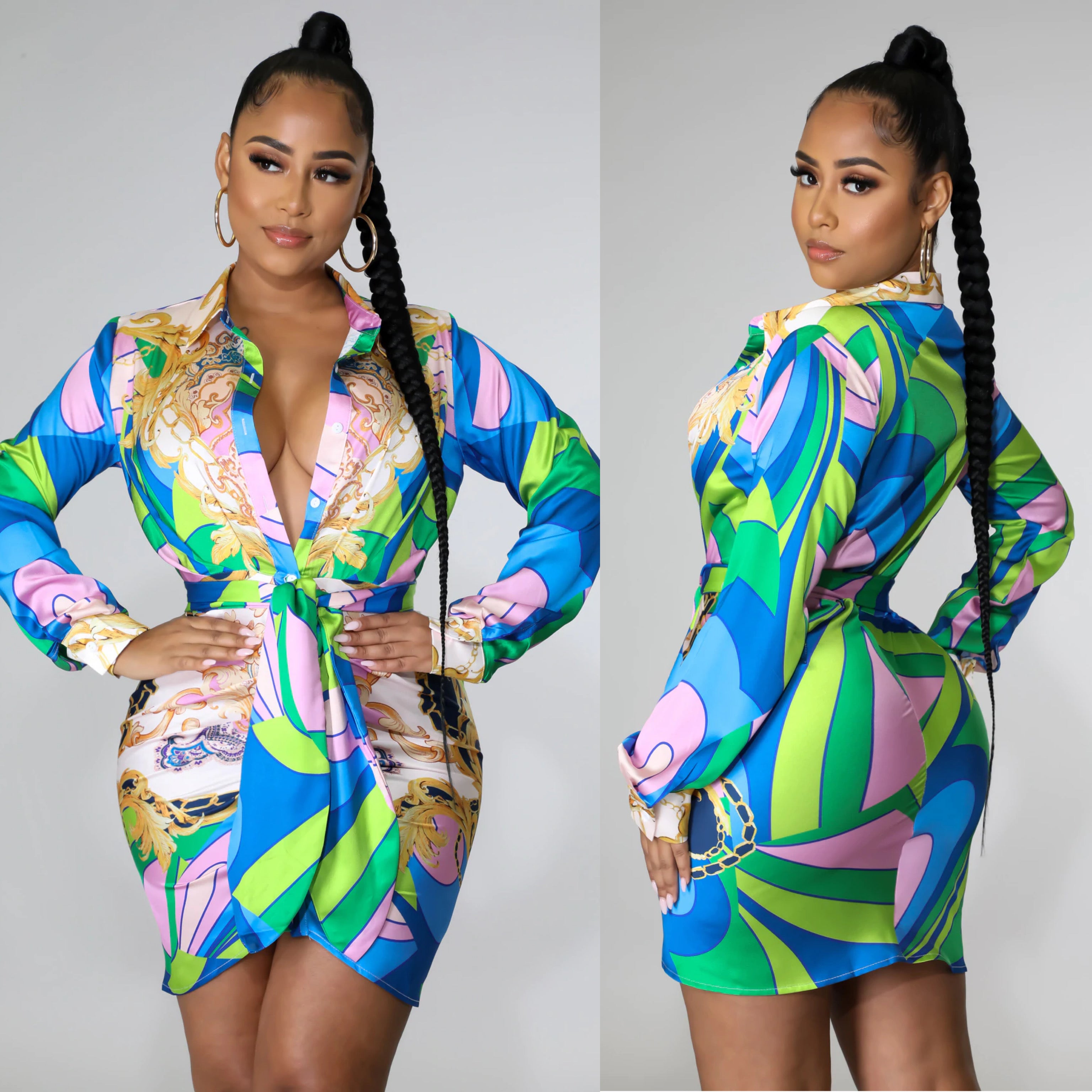 Gorgeous And Vibrant Print Tunic Dress With Self Tie.