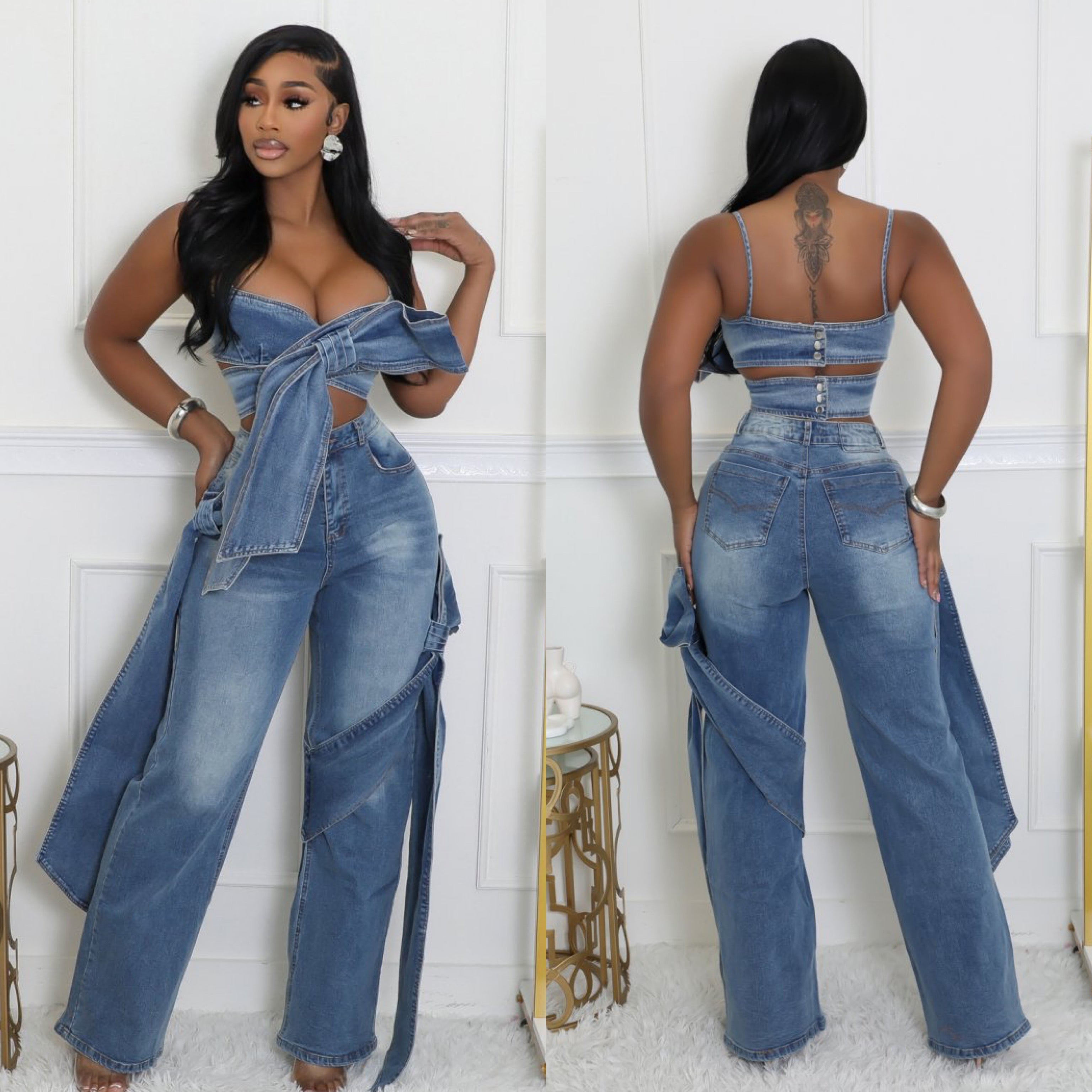 Gorgeous And Cutesy Denim With Fabulous Bow Details On Top And Pants