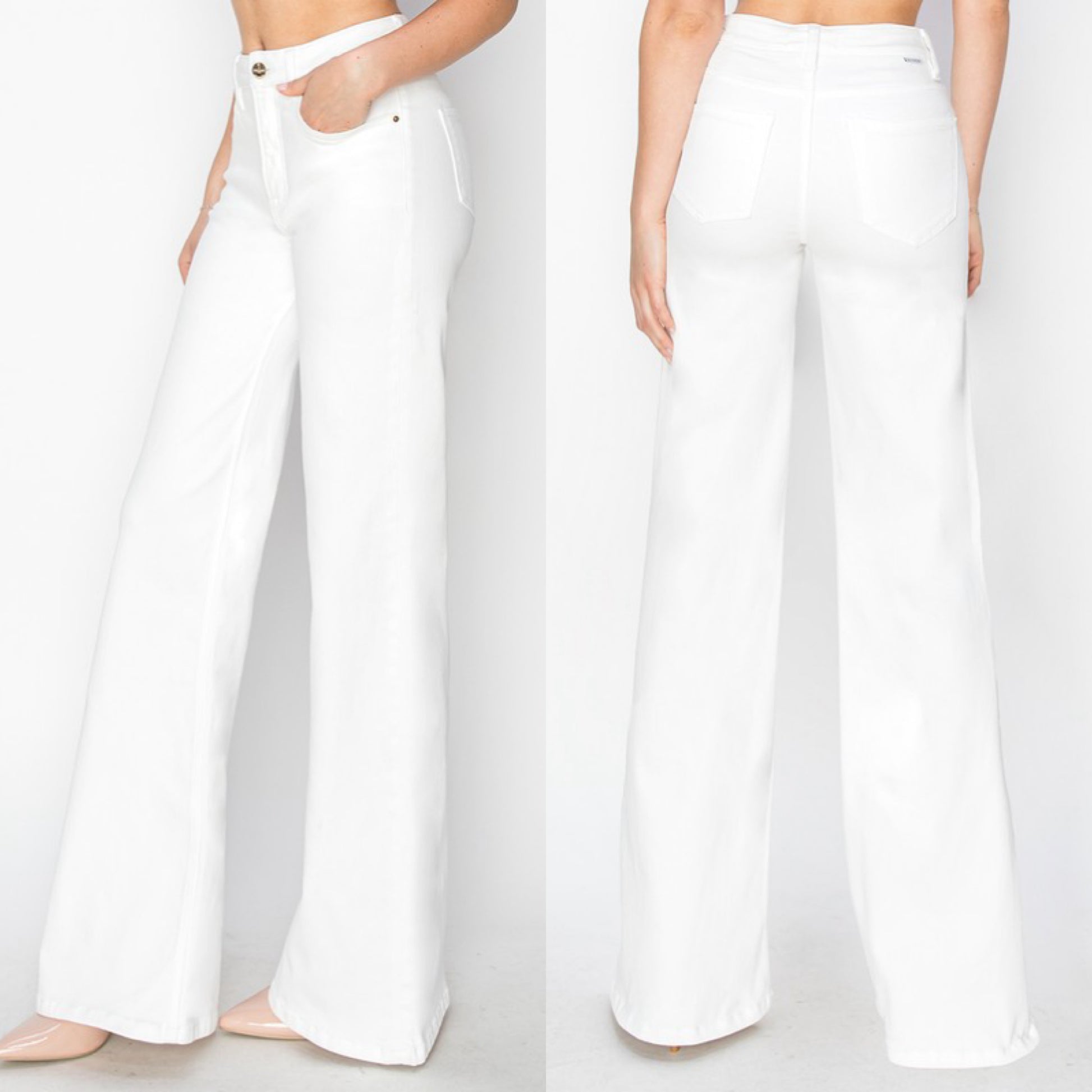 Step into sleek sophistication with these high-waisted white wide-leg jeans, crafted to elongate your silhouette and elevate your everyday style. Featuring a flattering high-rise fit, classic five-pocket design, and clean wide-leg cut, these jeans are the perfect blend of comfort and chic. The crisp white wash makes them a versatile wardrobe essential—perfect for dressing up or keeping it casually cool.
