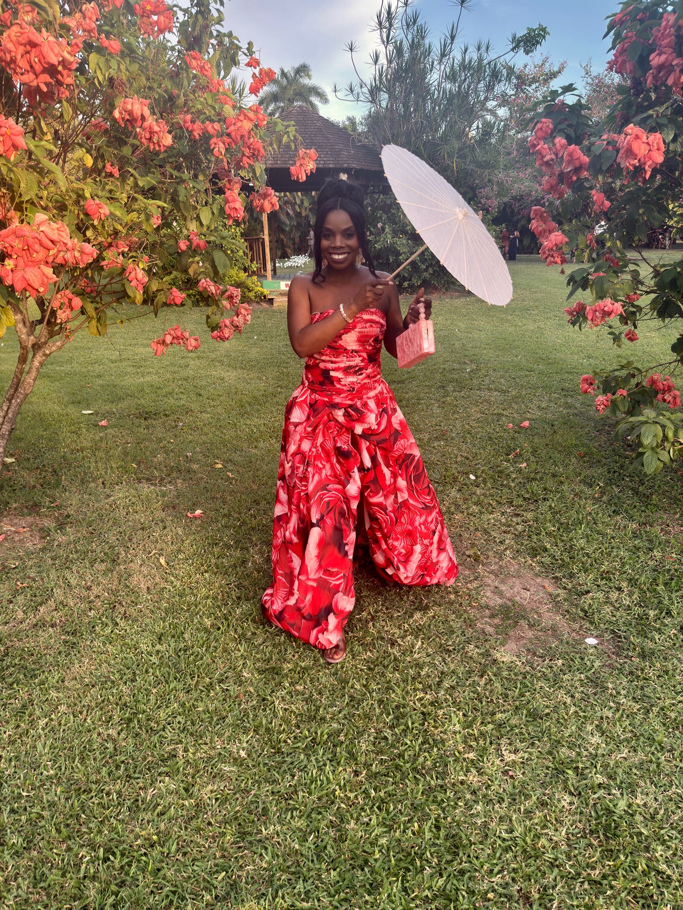 - Bold red floral print