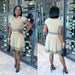 Fit and Silhouette: The bodice is fitted, while the skirt flares out into a pleated style, giving it a playful and youthful look. The pleats add volume and movement to the skirt.