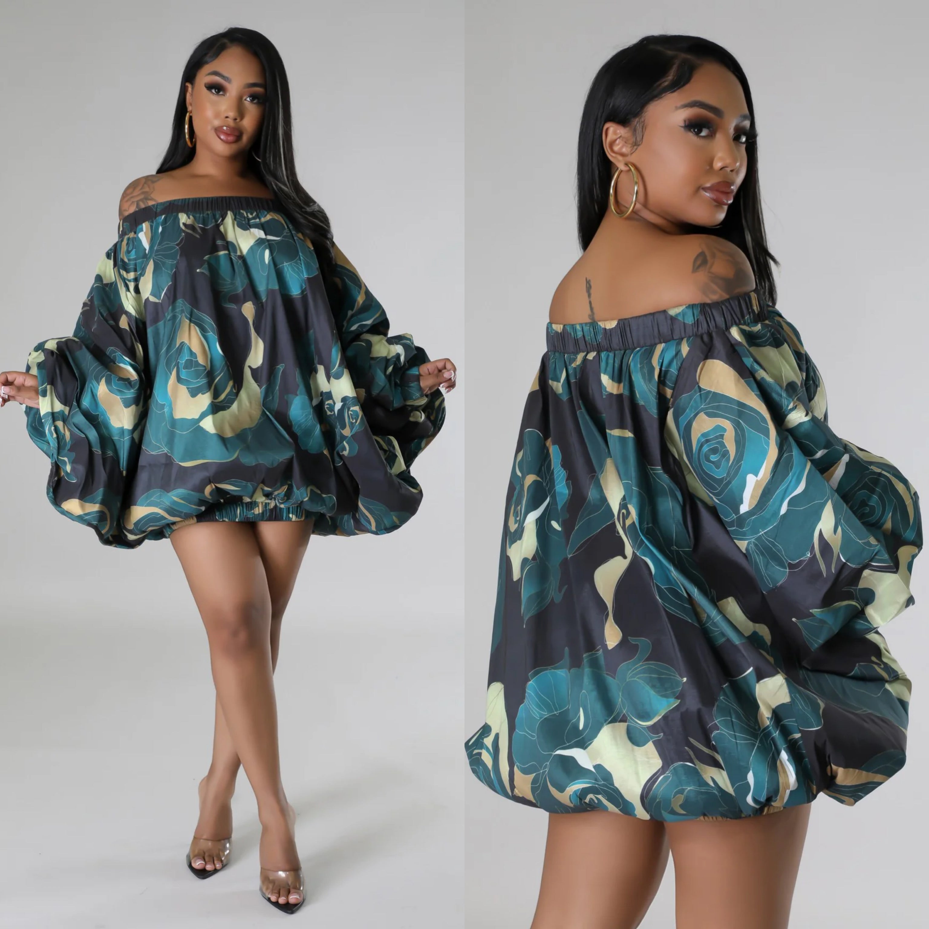 Make a bold statement in our Amara Off-Shoulder Bubble Mini Dress, a show-stopping piece that blends effortless glam with high-fashion edge. Featuring voluminous balloon sleeves and a dramatic bubble hem, this dress is designed to turn heads from every angle. The elastic neckline lets you wear it off-the-shoulder for that flirty, feminine vibe, while the flowy silhouette keeps it chic and comfortable.