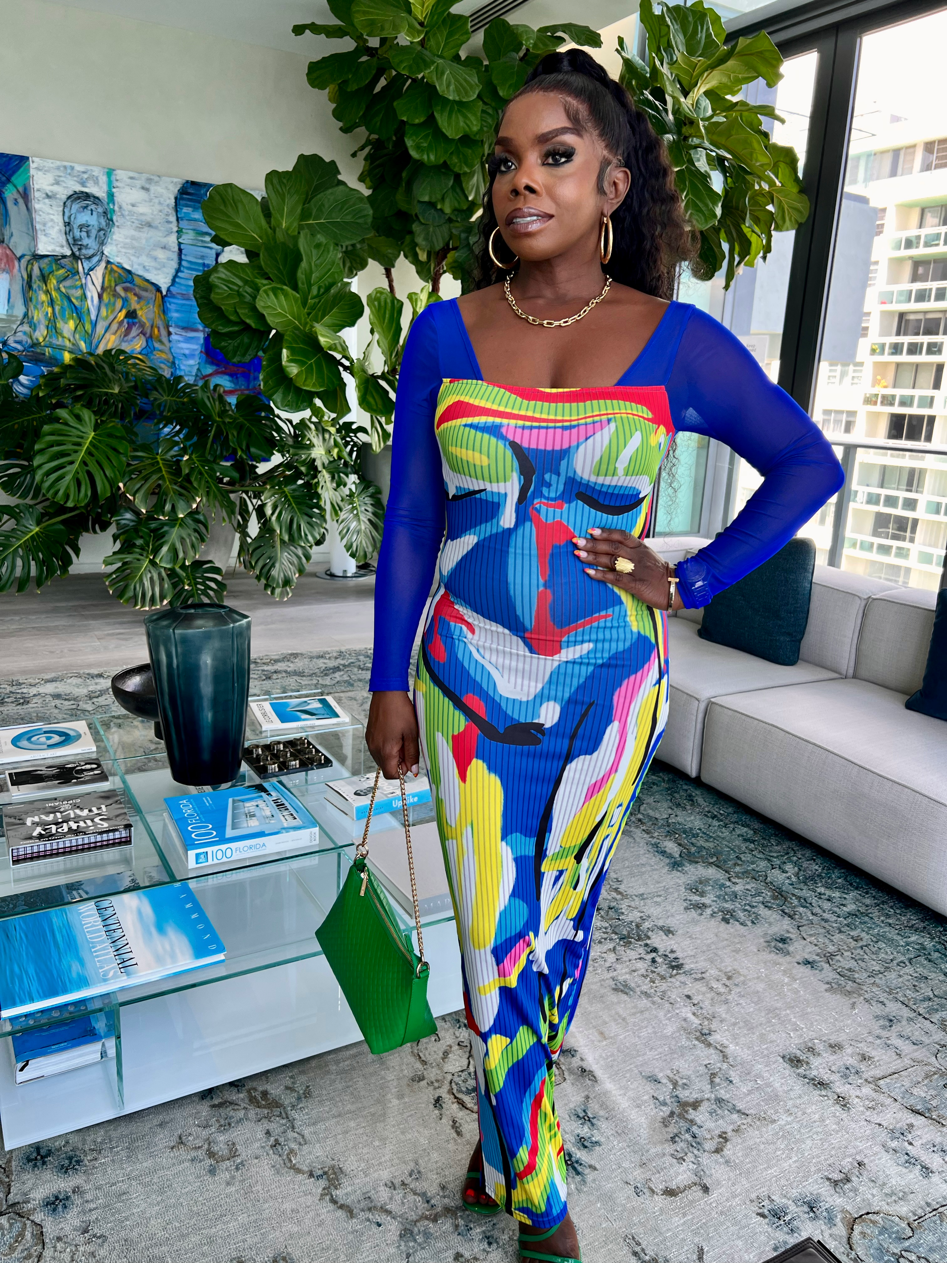 Gorgeous Multicolor Print Dress. 95% Polyester 5% Spandex