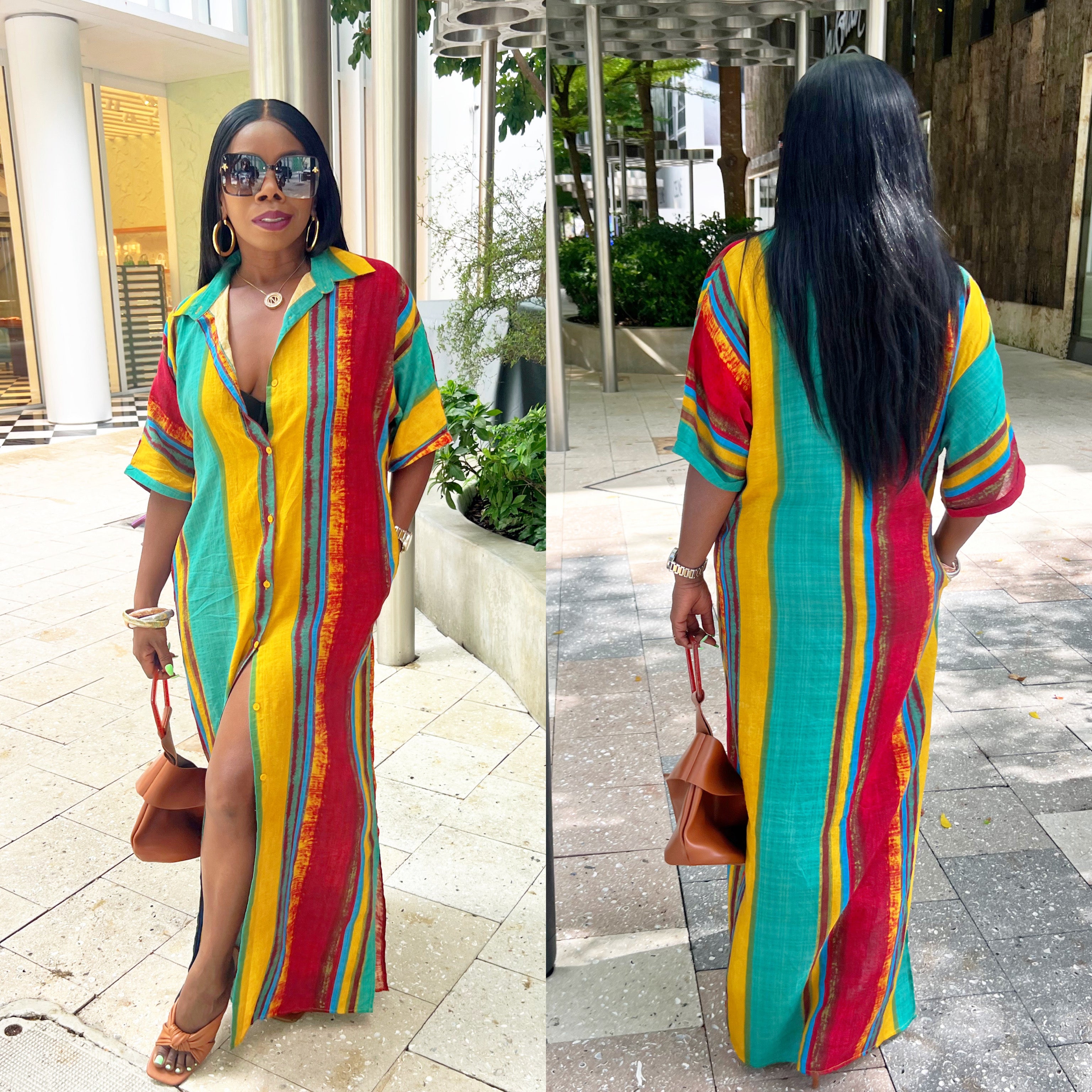 Gorgeous Pocketed Button Down Shirt Dress 100% Polyester Model wearing size small