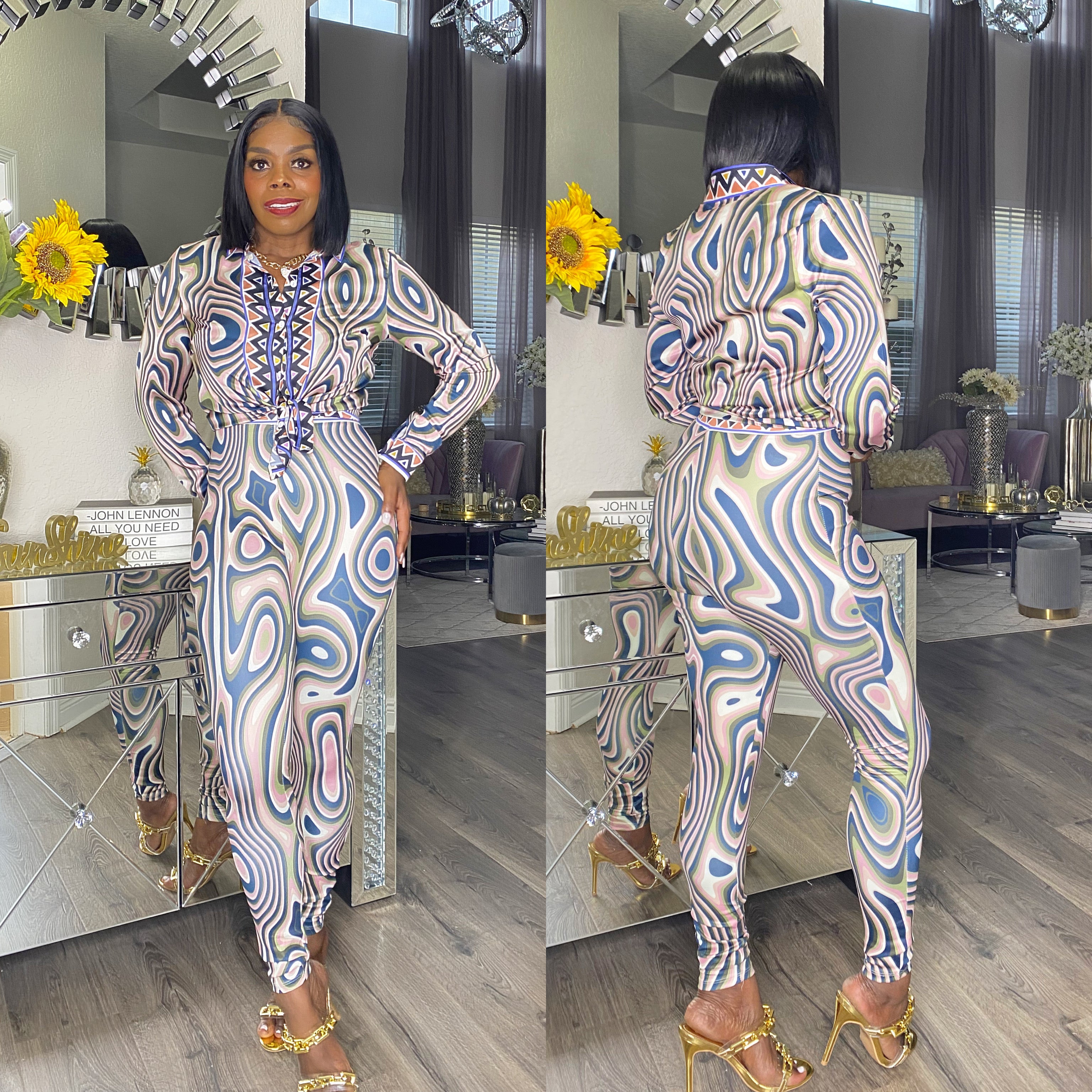 Unique Abstract Print Leggings and Shirt Set. Very stretchy Leggings. Shirt has no stretch.