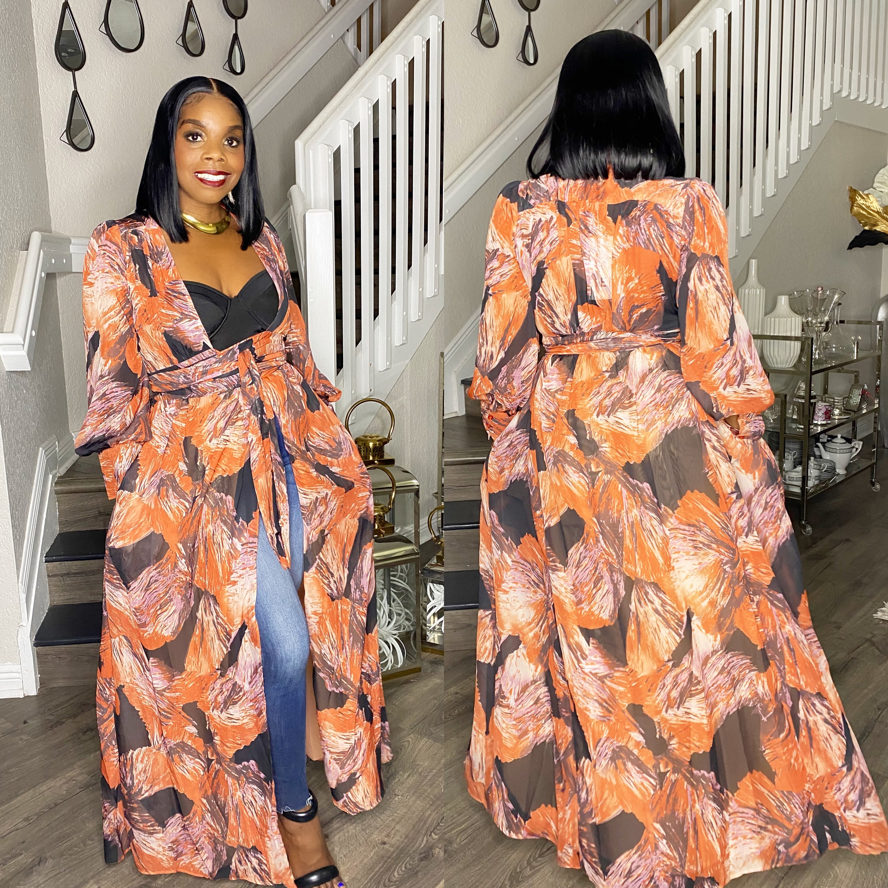 This Fashion Statement Piece can be worn as a dress,coverup,top or kimono. The possibilities are limitless with this piece. Also includes pockets.