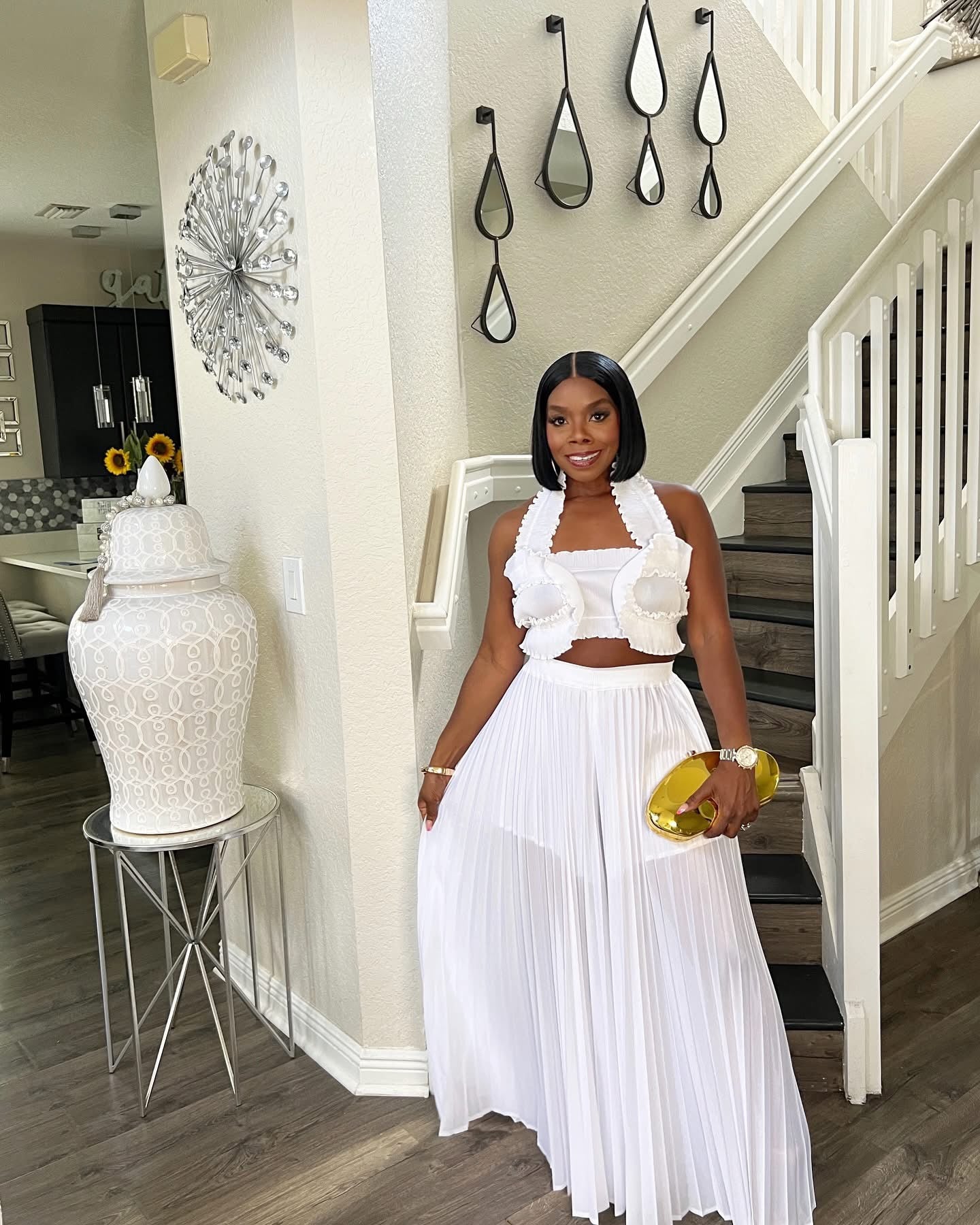 Style Tip: Complete the look with gold heels and a statement clutch for a glam-ready outfit.